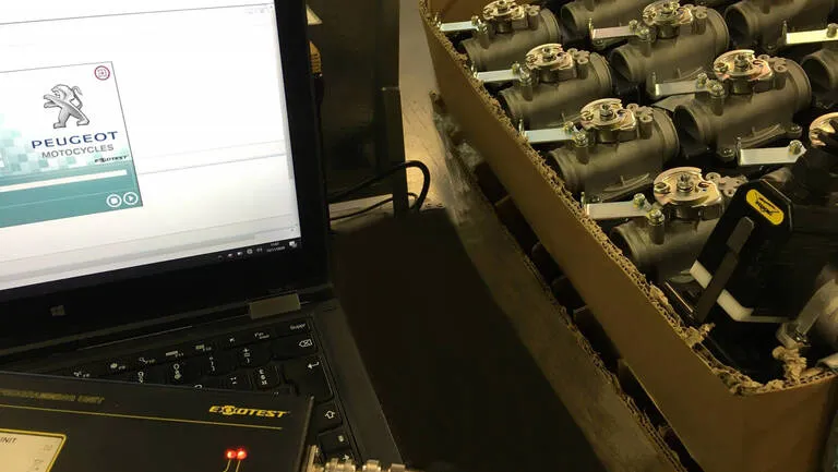 Annecy Electronique et sa marque Exxotest sont fiers d’accompagner Peugeot Motocycles dans ses opérations de téléchargement des ECUs moteurs sur la chaine de montage avec le Software PMTC Uploader et l’interface de communication ECU-PRG-UNIT. Cette collaboration qui dure depuis plus de 15 ans aura été renforcée cette année avec le passage à €5 de l’ensemble des calculateurs.